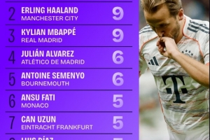 體育資訊10月17日訊 本周末,歐洲五大聯(lián)賽將重燃戰(zhàn)火。Squawka盤點了本賽季迄今為止五大聯(lián)賽進球數(shù)情況,凱恩以11球居首,哈蘭德和姆巴佩均打進9球緊隨其后。