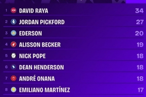 體育資訊10月19日訊 據(jù)統(tǒng)計,阿森納門將拉亞自2023/24賽季加盟球隊以來,在英超聯(lián)賽中的表現(xiàn)極具統(tǒng)治力。