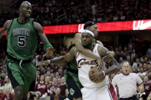 2010年東部半決賽(騎士VS綠軍)G4中,詹姆斯在完成后場搶斷后準備上籃,緊隨身后的皮爾斯采取犯規(guī)戰(zhàn)術(shù),兩人互相抱著摔入了觀眾席。詹姆斯的母親在現(xiàn)場觀戰(zhàn)憤怒不已,詹姆斯在一旁對著母親大吼道:“Sit down!(你給我坐下?。?。