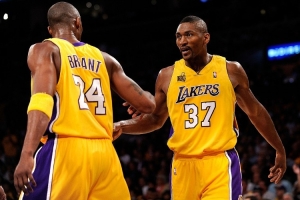 2010年6月17日,湖人和凱爾特人在總決賽中迎來生死戰(zhàn)。比賽到第四節(jié)雙方殺得難解難分,還剩1分鐘時(shí)科比傳球給阿泰斯特,后者投進(jìn)了鎖定勝局的三分,幫助球隊(duì)最終捧起總冠軍獎(jiǎng)杯。是役,科比拿下23分,阿泰斯特貢獻(xiàn)全隊(duì)第二高的20分。綠軍雖然首發(fā)五虎全部得分上雙,但還是遺憾落敗。