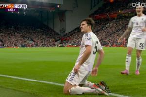 體育資訊10月20日訊 英超第8輪利物浦vs曼聯(lián),第84分鐘B費(fèi)助攻馬奎爾頭球破門(mén)!曼聯(lián)再下一城,2-1領(lǐng)先利物浦。馬奎爾的慶祝,堪稱(chēng)帥氣!