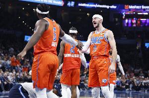 “人們都說雷霆是青年軍,但是你自信看,首發(fā)陣容并不全是年輕人。實(shí)際上,替補(bǔ)席上的確有很多年輕球員,這使得整支球隊(duì)看起來非常年輕。然而,你再看卡魯索(31),多特(26)、亞歷山大(27)和哈滕(27)等人,你會(huì)發(fā)現(xiàn)這是一個(gè)相對(duì)老練的團(tuán)隊(duì)。這支隊(duì)伍雖然年輕,但不乏經(jīng)驗(yàn),他們充滿活力,我非常喜歡他們?!卑⒗锛{斯表示。