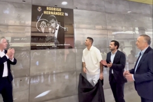 體育資訊10月21日訊 比利亞雷亞爾俱樂部在主場外的“金色大道”為青訓(xùn)出身的球員、2024年金球獎得主羅德里舉行了畫像揭幕儀式,以此向這位成長于俱樂部并在世界足壇取得非凡成就的中場巨星致敬。