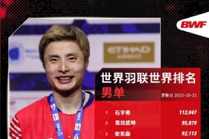 體育資訊10月21日訊 世界羽聯(lián)2025年底43周世界排名發(fā)布,國羽占據(jù)三個單項的榜首,分別是男單、女雙和混雙。