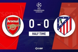 上半場(chǎng)傷停補(bǔ)時(shí)1分鐘,半場(chǎng)結(jié)束,阿森納暫0-0馬競(jìng)。