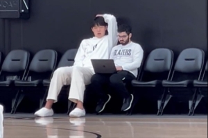 體育資訊10月22日訊 今日解說員王猛更博曬出楊瀚森在訓練時和助理教練在場邊一起看錄像的視頻。