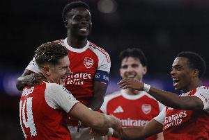 阿森納在酋長球場以一場統(tǒng)治性表現(xiàn)擊敗馬德里競技,歐冠繼續(xù)保持全勝。約克雷斯梅開二度,加布里埃爾頭球破門,馬丁內(nèi)利精彩終結(jié),這場4-0的勝利讓阿爾特塔的球隊(duì)三戰(zhàn)積九分。盡管最終比分懸殊,但半場結(jié)束時(shí)仍是0-0,埃澤的折射擊中橫梁,拉亞的失誤險(xiǎn)些讓馬競進(jìn)球。下半場阿爾瓦雷斯遠(yuǎn)射擊中橫梁,但隨后阿森納在14分鐘內(nèi)連入四球。