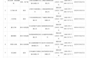 體育資訊10月22日訊?國家新聞出版署公布 2025年10月 國產(chǎn)網(wǎng)絡(luò)游戲?qū)徟嫣?名單,《明日方舟》客戶端、《太吾繪卷:天幕心帷》《凹凸世界:彩虹收藏家》《三國殺正面對決》《群星:銀河歌劇》等 159 款游戲過審。
