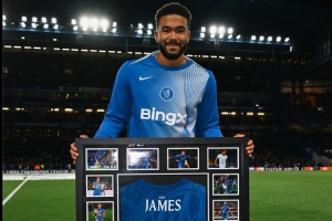 里斯-詹姆斯在本場比賽達(dá)成切爾西生涯200場里程碑,他在賽前也展示了俱樂部為其贈(zèng)送的紀(jì)念相框,主體為印有200字樣的他本人的球衣,周邊則是包括捧得世俱杯和歐冠在內(nèi)的高光時(shí)刻。