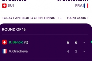 東京網(wǎng)球公開賽第二輪,5號種子本西奇耗時1小時25分鐘以6-4 6-3擊敗資格賽選手格拉切娃,晉級八強將戰(zhàn)8號種子穆霍娃。