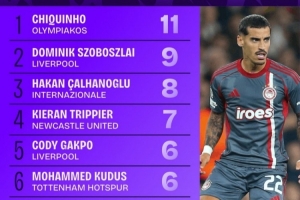 體育資訊10月23日訊 本賽季歐冠聯(lián)賽階段已戰(zhàn)罷3輪,Squawka統(tǒng)計了到目前為止的精準(zhǔn)傳中榜單,奧林匹亞科斯中場奇奎尼奧11次位列第一,利物浦中場索博斯洛伊9次第二。