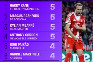 體育資訊10月23日訊 本賽季歐冠聯(lián)賽階段已戰(zhàn)罷3輪,Squawka統(tǒng)計了到目前為止的參與進球榜,拜仁前鋒凱恩、巴薩攻擊手拉什福德、皇馬的姆巴佩以及紐卡邊鋒安東尼-戈登均參與5球。