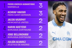 1.奧巴梅揚(yáng)(馬賽):3