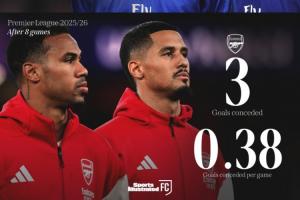 體育資訊10月24日訊 阿森納本賽季的防守堪稱銅墻鐵壁,8輪英超僅丟3球,3場歐冠和1場聯(lián)賽杯更是1球未丟,總計12場比賽丟掉3球。