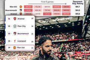 根據(jù)Opta的賽程難度評級,曼聯(lián)是本賽季英超開局最艱難的球隊(duì)……