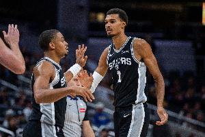 文班亞馬本場比賽攻守依舊積極,飛天遁地難以阻擋,但可惜外線沒開,防守端也陷入犯規(guī)麻煩,最終加時賽早早犯滿離場。不過馬刺其他球員在文班下場后,反而進攻端發(fā)揮更加出色,三分萬箭齊發(fā)拿下了比賽。