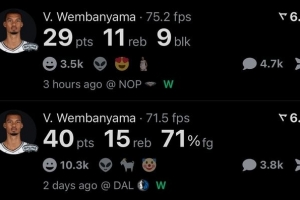 賽季前兩場,文班合計砍下69分26籃板12蓋帽,真是命中率68.2%,零失誤!
