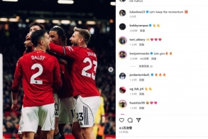 盧克-肖也在賽后通過社媒曬出和隊(duì)友的相擁慶祝照,并配文:“讓我們延續(xù)當(dāng)前的勢頭!”