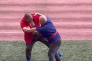 據(jù)《濟(jì)南時(shí)報(bào)》報(bào)道,本場(chǎng)比賽賽前進(jìn)行了暖場(chǎng)節(jié)目——摔跤。