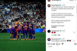 “我們傾盡全力,但征程仍在繼續(xù),未來還有很多比賽,此刻我們已經(jīng)專注于接下來的比賽。為球隊的努力感到無比自豪,繼續(xù)前進!巴薩永遠前進!”