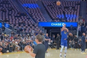 老粉已經(jīng)慌了?庫(kù)里賽前熱身 中圈三分出手一發(fā)入魂