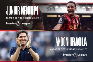 表現(xiàn)優(yōu)異!伯恩茅斯入圍英超10月最佳教練、最佳球員、最佳進(jìn)球