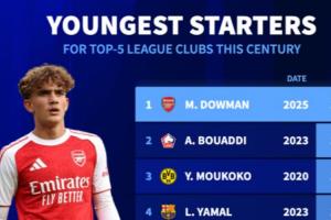 15歲天才載入史冊(cè)!道曼成五大聯(lián)賽本世紀(jì)最年輕首發(fā),亞馬爾第4