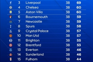 OPTA預(yù)測英超最終排名:阿森納80分奪冠,曼城紅軍69分,曼聯(lián)第10
