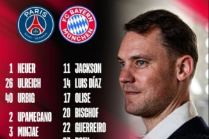 拜仁公布歐冠對巴黎名單:凱恩領(lǐng)銜,迪亞斯、奧利塞在列