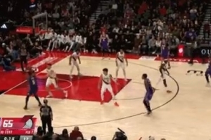 戰(zhàn)舊主!鮑威爾上半場(chǎng)6中4&4罰4中砍下13分2助 出現(xiàn)4次失誤