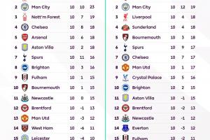 來(lái)找亮點(diǎn)了英超官方曬上賽季、本賽季10輪過(guò)后積分榜對(duì)比