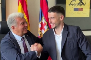 巴薩支付2634萬(wàn)歐解約金簽下西班牙人門將霍安-加西亞,球員抵達(dá)諾坎普辦公室簽署合同,巴薩官方社媒曬出簽約儀式的視頻,歡迎霍安-加西亞加盟球隊(duì),球員在簽約時(shí)露出燦爛笑容。