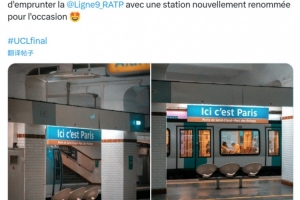 2024-25賽季歐冠決賽即將上演,巴黎對(duì)陣國(guó)米,巴黎地鐵9號(hào)線車站暫時(shí)更名,新名稱為“這里是巴黎”,以為巴黎圣日耳曼加油。