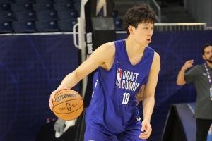 楊瀚森在聯(lián)合試訓的兩場5V5比賽中分別拿到12分1板2助1帽和11分6板6助1帽。