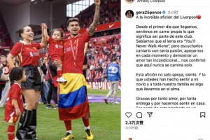 從我們到來的第一天起,我們就切身體會到了成為這家俱樂部一員意味著什么。我們知道利物浦座右銘是“You’ll Never Walk Alone”(你永遠(yuǎn)不會獨(dú)行),但聽到你們?nèi)绱顺錆M激情地高唱它,在每一刻都支持我們,并展現(xiàn)出如此無條件的愛……這向我們證實(shí)了,在這里,你永遠(yuǎn)不會獨(dú)行。