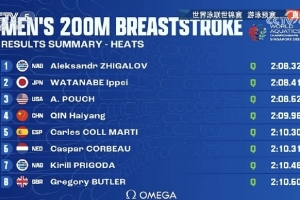 世錦賽男子200米蛙泳預(yù)賽:覃海洋第4、董志豪第15,晉級(jí)半決賽