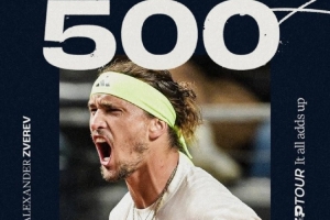 茲維列夫成為現(xiàn)役第5位達(dá)成500勝的選手,也是首位達(dá)成這一成就的90后球員。其余4位分別是德約科維奇(1150勝)、西里奇(593勝)、孟菲爾斯(583勝)、瓦林卡(580勝)。
