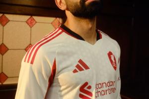客場球衣則延續(xù)利物浦經(jīng)典的客場配色,以奶油白為主色,綴以黑紅雙色細(xì)節(jié)作為點(diǎn)睛。隊(duì)徽創(chuàng)新采用盾形框架設(shè)計(jì),利弗鳥坐落于盾牌之中,其輪廓靈感源自1906年安菲爾德主看臺建筑結(jié)構(gòu),通過當(dāng)代手法重構(gòu)歷史圖騰。客場球衣有兩套搭配方案——黑色球褲搭配奶油白球襪與奶油白球褲搭配黑色球襪,滿足多元風(fēng)格表達(dá)