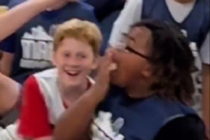值得一提的是,在與馬紹爾擊完掌后,有幾名小朋友舔了舔自己的手。