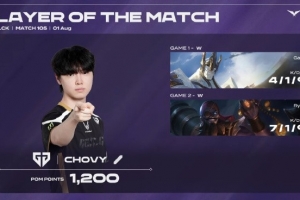 體育資訊8月1日訊 Chovy兩局砍11/2/18拿下GEN對(duì)陣KT系列賽MVP,1200 POM積分領(lǐng)跑LCK.