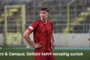 德托尼在上賽季冬窗租借加盟蘇黎世草蜢,拜仁官方表示在經(jīng)各方協(xié)商一致后,此次租借現(xiàn)已提前終止,這名中衛(wèi)將即刻重返拜仁二隊(duì)。