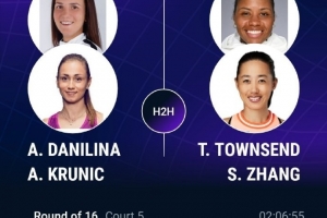 張帥/湯森德在第二盤挽救兩個賽點,最終逆轉(zhuǎn)達尼麗娜/克魯尼奇,驚險晉級八強,三盤比分:6-7(5)、7-6(5)、10-4。