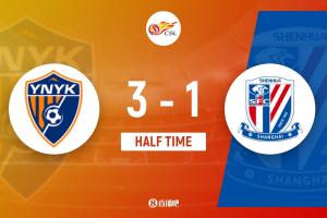 體育資訊08月02日訊 北京時(shí)間18:00,中超第19輪,云南玉昆目前半場(chǎng)3-1領(lǐng)先上海申花!
