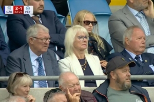 卡迪夫城最終2-1贏得比賽,弗格森是這場(chǎng)比賽的次要看點(diǎn),他被攝像機(jī)捕捉到坐在看臺(tái)上,身旁是彼得堡聯(lián)足球總監(jiān)巴里-弗萊。弗萊曾在老特拉福德青訓(xùn)營(yíng)受訓(xùn),但未代表一線隊(duì)出場(chǎng)過(guò)。