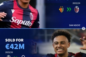 23/24賽季1645萬歐買入,今夏4200萬歐賣至諾丁漢森林,凈賺2555萬歐