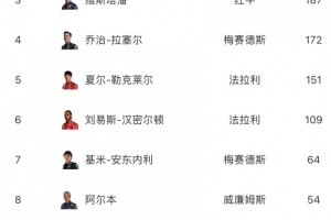 車手積分榜方面,諾里斯縮小了與皮亞斯特里的差距,兩人的差距僅有9分,維斯塔潘繼續(xù)排名第三。