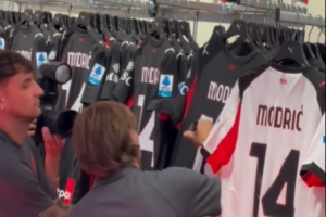這將是第一批由米蘭新中場莫德里奇簽名的球衣。這位克羅地亞球星在位于但丁大街的商店外受到了3000多米蘭球迷的熱烈歡迎。