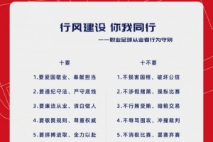讓我們攜手努力,恪守“十要十不要”,從自身做起,以良好言行共筑職業(yè)足球新形象,為中國足球健康發(fā)展貢獻力量!