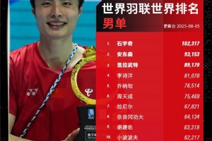 體育資訊8月5日訊 世界羽聯(lián)更新了最新一期世界排名,石宇奇、安洗瑩、金元昊/徐承宰、劉圣書/譚寧、馮彥哲/黃東萍繼續(xù)領(lǐng)跑各單項第一。