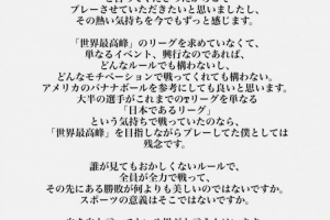 好像有很多人曲解了我的意思,我最后在此說明一下。T聯(lián)賽設(shè)立的初衷應(yīng)該是成為世界一流聯(lián)賽吧,因此我選擇來到這里,我所效力的岡山隊(duì)也曾向我表達(dá)了要成為世界第一俱樂部的意愿,這也讓我當(dāng)初下定了在這里效力的決心,如今回想起來,心中也是熱血沸騰。